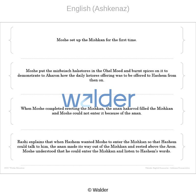 | Subject(s): | Tanach, Torah: Chumash and Parsha, Shemos, Pekudei |