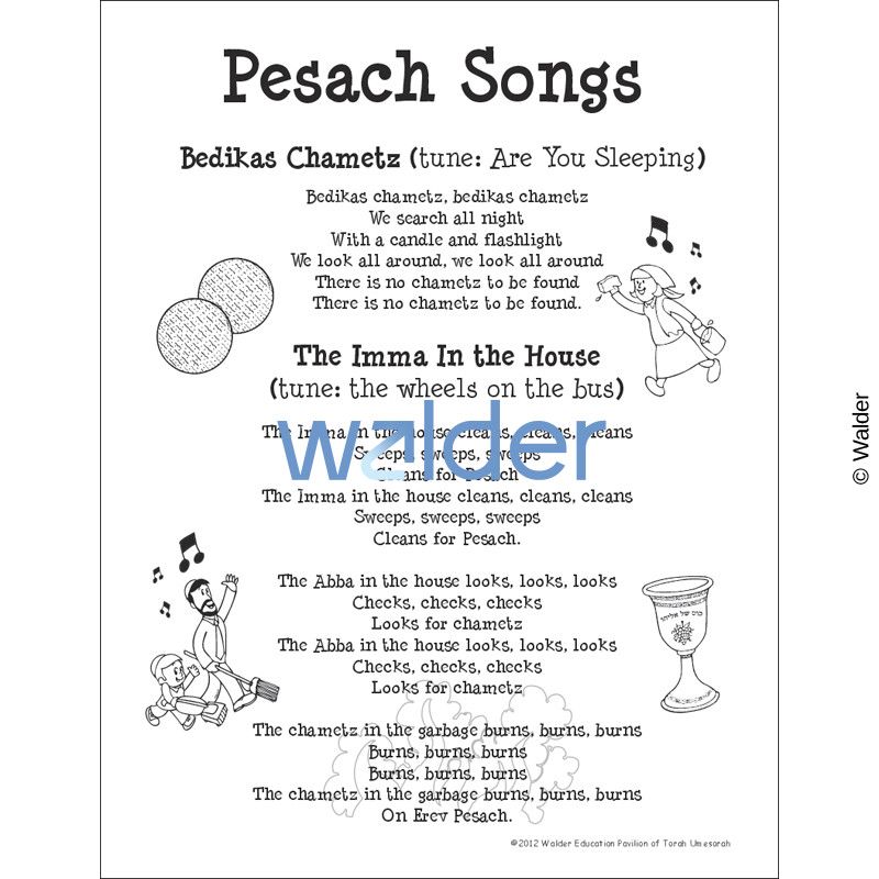 Fourth in a series of Pesach songs. This page includes all of the words of the two Pesach songs “Bedikas Chometz” and “The Ima In The House.” Possible Uses: Use as a take-home handout or include in classroom Hagaddah. Teacher will practice these songs with the students in class and parents will sing along with their children at home.