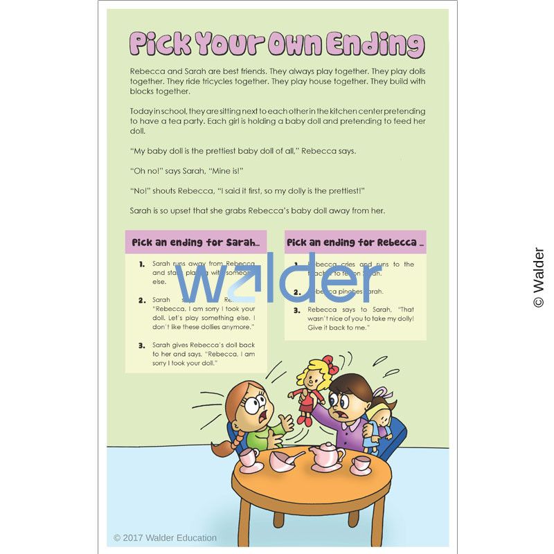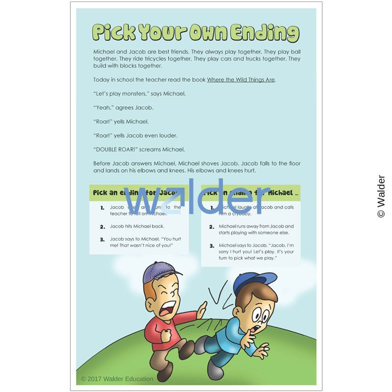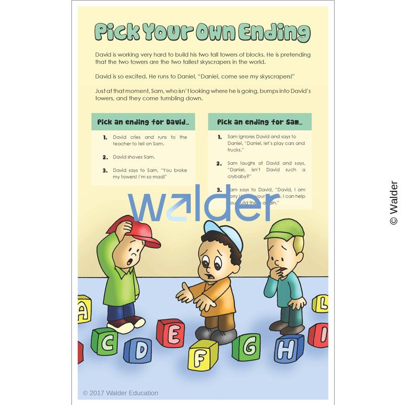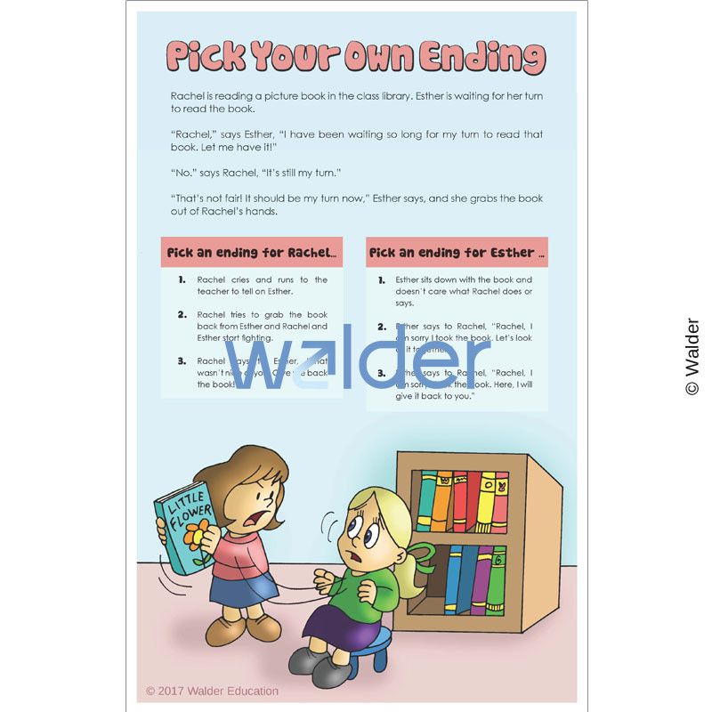 Children love the ‘Pick Your Own Ending’ genre, and they will love this activity as well, when they or their teacher reads the scenarios and together they choose which endings are best.