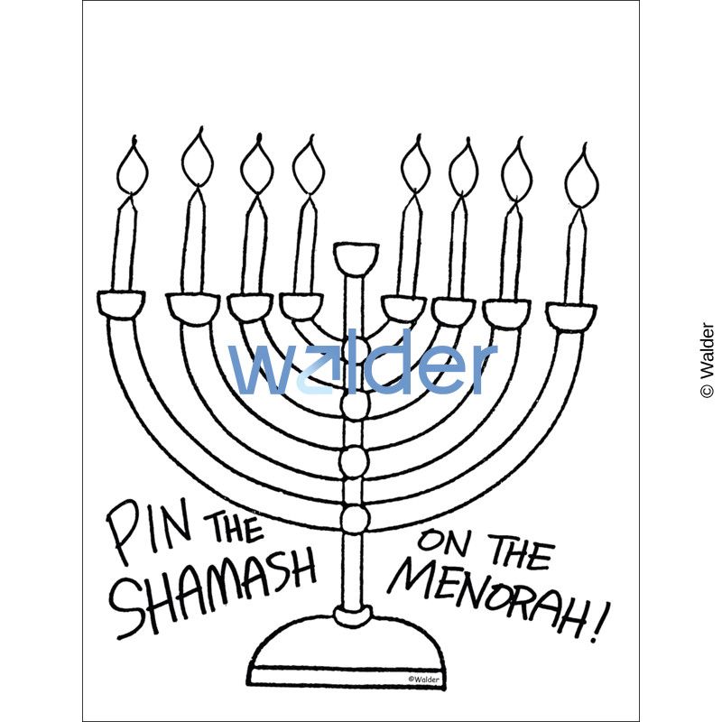 It is just like pin the tail on the donkey! Students will enjoy playing this spin on the classic game. Teachers may choose to make and play in class or allow students to make their own to enjoy at home. Possible Uses: Color the menorah and shamashim. (optional: laminate) stick one side of velcro onto the backs of each shamash. put the other side of a piece of velcro to the place on the menorah where the shamash is meant to be. Have the students have fun playing “pin the tail on the dreidal’!