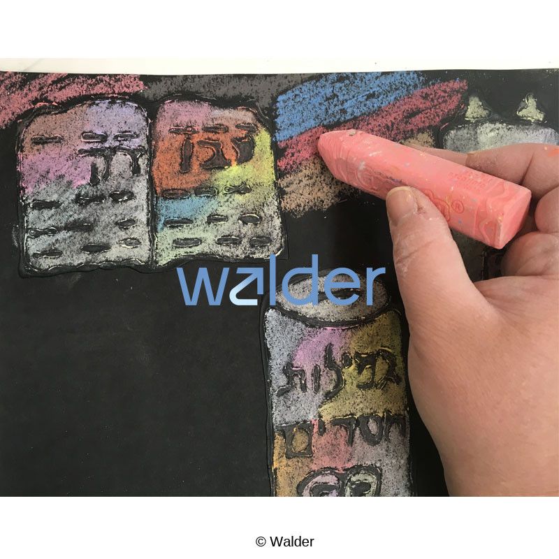 This Pirkei Avos Chalk Blending Art represents the Mishna in Pirkei Avos, perek alef, Mishnah beis that states, “On three things the world stands: On the Torah, on Avodah and on Gemilas Chasadim.” Students will express their creativity while enjoying sensory input.