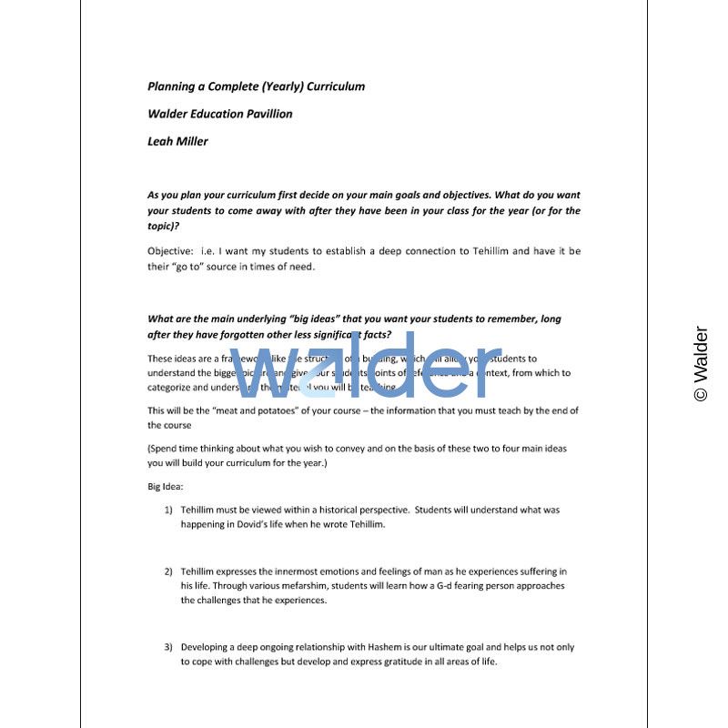 The teacher will develop the skills needed to plan a full year curriculum.