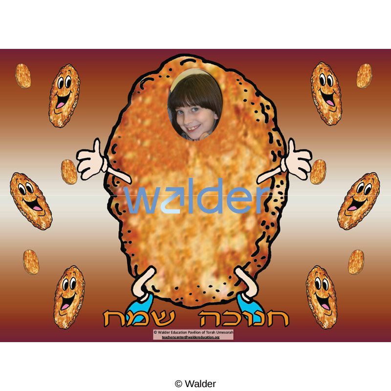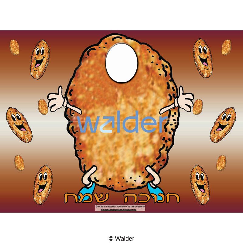 This 3 panel display of Potato Latke with the phrase ‘Chanukah Sameiach’ is ideal for photo opportunities at school functions and celebratory events. The students stand behind the board and, with their head put through the hole, their picture is taken. The picture can then be included in a Chanukah card or distributed at a carnival. This allows the students to take ownership of the item and what it means thereby enhancing their appreciation of the holiday.