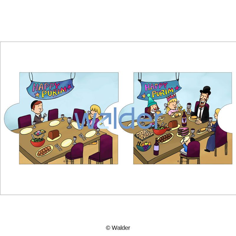 Students will begin to develop and reinforce their ability to pattern by sequencing these simple 2 piece puzzles of before and after Purim pictures.