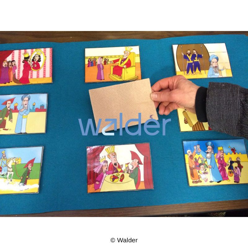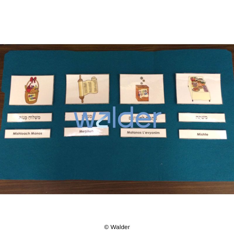 This felt board activity helps teach the story of Purim through the use of sequenced picture cards and/or the use of Purim character cut outs. It also reinforces the mitzvos of Purim with simple picture cards and includes corresponding word labels in English and Hebrew for use with older students. Activity may be self or teacher directed.