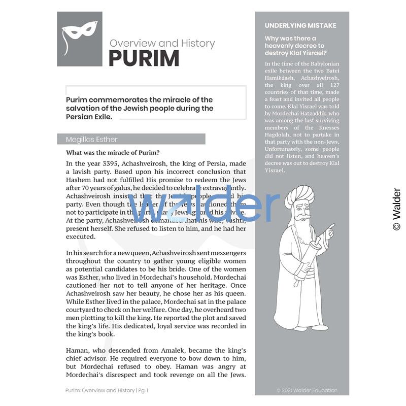 Discover the origins of the holiday with this Purim History and Overview handout. Students will grasp a basic appreciation of the holiday, its significance, and why we celebrate.