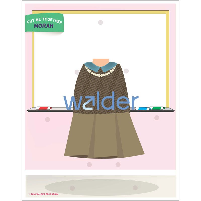 Students will take one part at a time, identify the body part, count 1 head, 2 arms, etc., and put it in the correct place on the Morah. The students will learn main body parts and facial features.