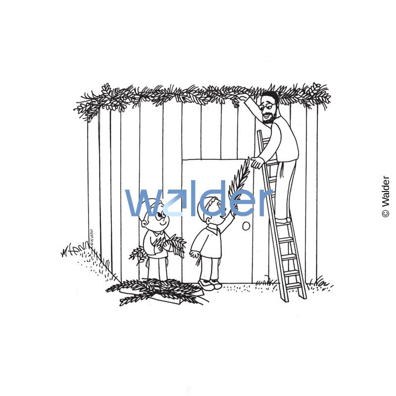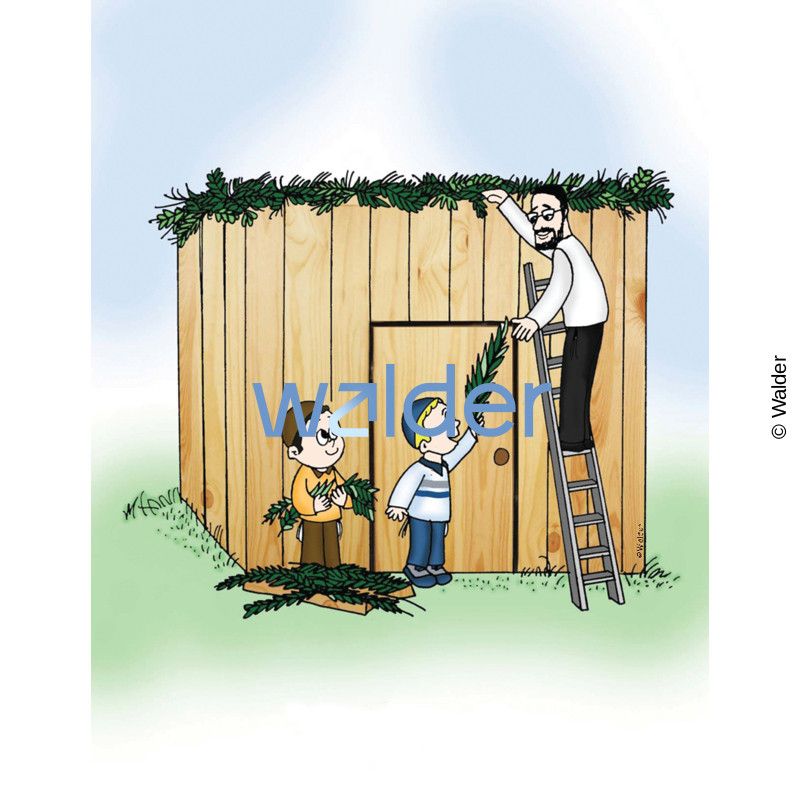 The Walder Education Pavilion brings Jewish education to life with these Sukkos clipart illustrations and images. Dress up the classroom, decorate student pages, and create activities or gifts. These adorable and fun drawings capture the essence of the holiday. Pictured: Putting Schach on the Sukkah