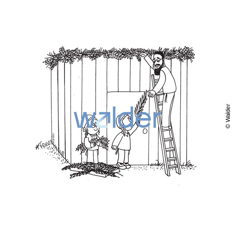 The Walder Education Pavilion brings Jewish education to life with these Sukkos clipart illustrations and images. Dress up the classroom, decorate student pages, and create activities or gifts. These adorable and fun drawings capture the essence of the holiday. Pictured: Putting Schach on the Sukkah
