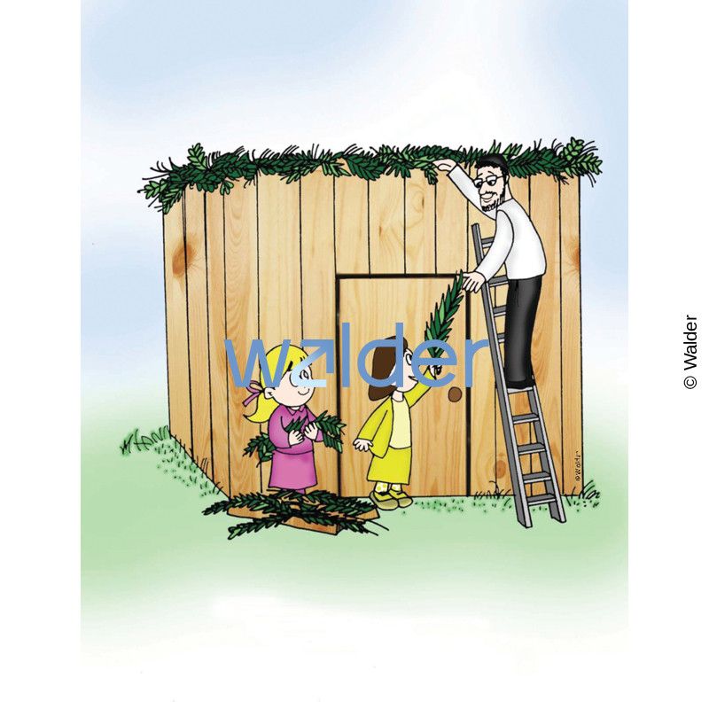 The Walder Education Pavilion brings Jewish education to life with these Sukkos clipart illustrations and images. Dress up the classroom, decorate student pages, and create activities or gifts. These adorable and fun drawings capture the essence of the holiday. Pictured: Putting Schach on the Sukkah