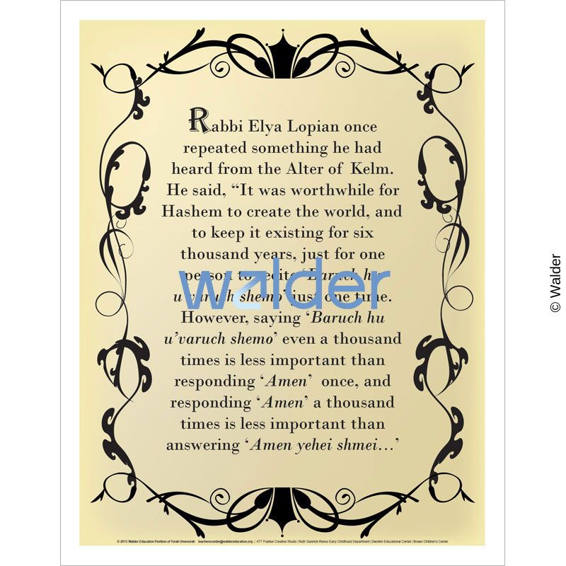Poster featuring a quote Rabbi Elya Lopian told over from the Alter of Kelm in black type on a beige background surrounded by a wavy frame.