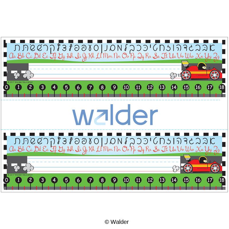 These desk strips featuring race car illustrations will help students as they easily reference the letters they are learning to write in both Hebrew and English script. Use them as place cards for student seating by writing each student’s name on a desk strip and attaching it her desk. Desk toppers help teachers learn student names and will help with attendance taking and creating seating charts. A ruler is printed on the bottom for easy reference.
