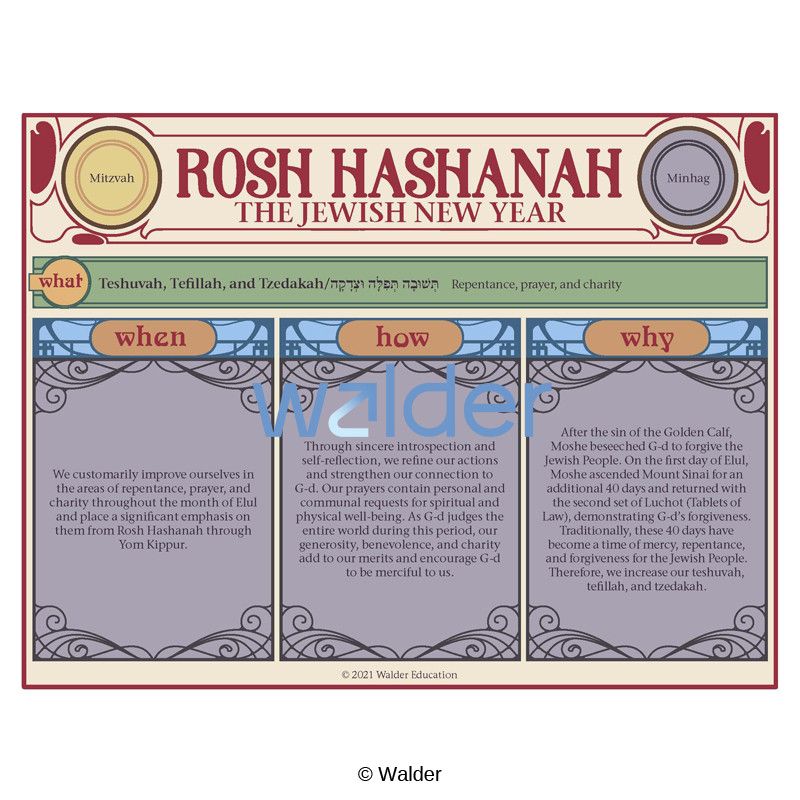 Perfect for Hebrew Schools, this holiday handout contains everything you need to know about Rosh Hashanah. Familiarize yourself, your students, and your guests with the significant aspects and practices of the holiday.