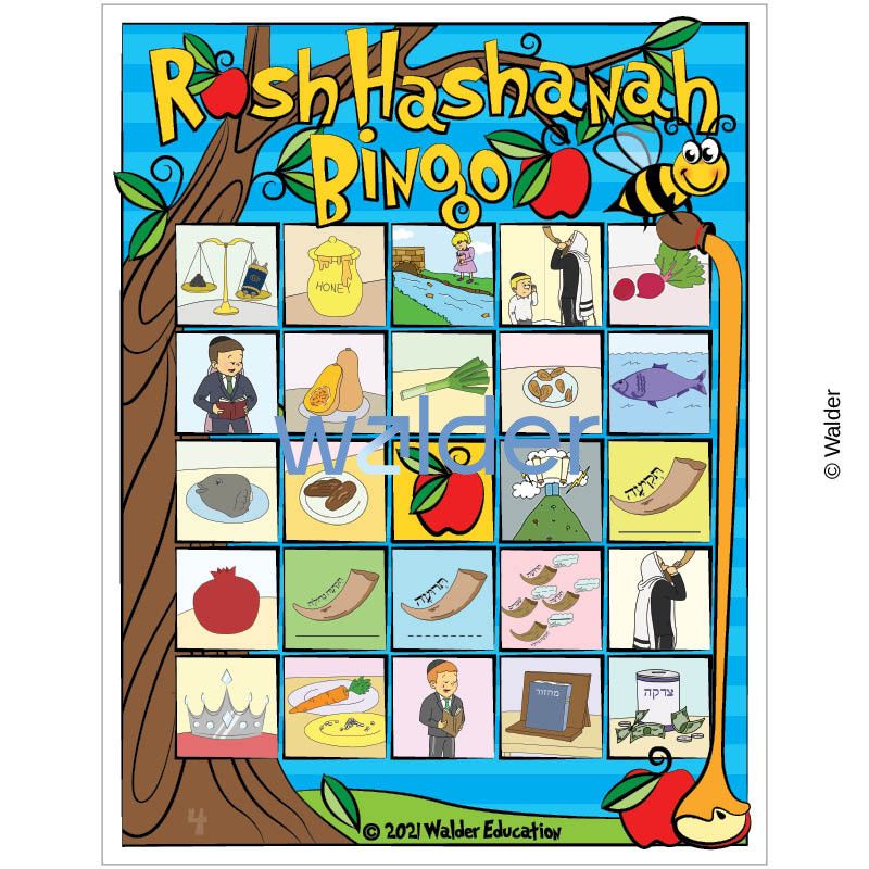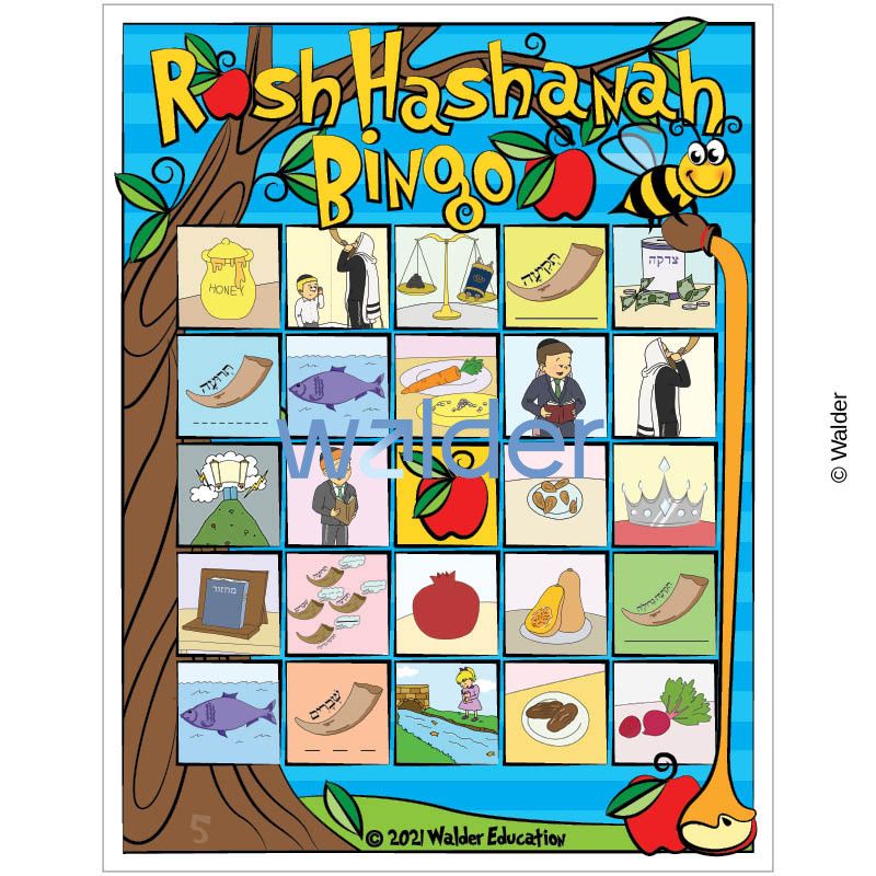 Reinforce Rosh Hashanah concepts, mitzvos, and customs with this Bingo review game. The teacher reads out a question, and the students place a marker over the picture on their Bingo board that illustrates the answer. The question cards include the question and an associated picture. An answer key is provided. With 30 unique Bingo boards, everyone can play.