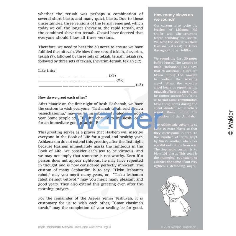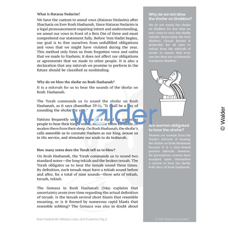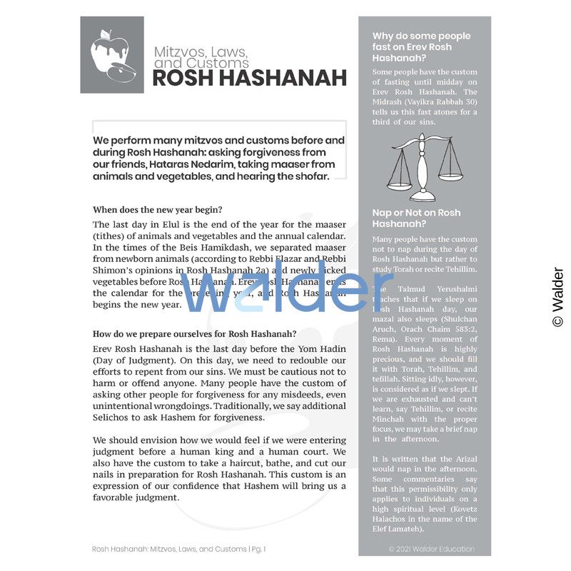 Understand holiday practices with this Rosh Hashanah Mitzvos, Laws, and Customs handout. Students will know the what, how, and why of each commandment so that they can perform them with enthusiasm.