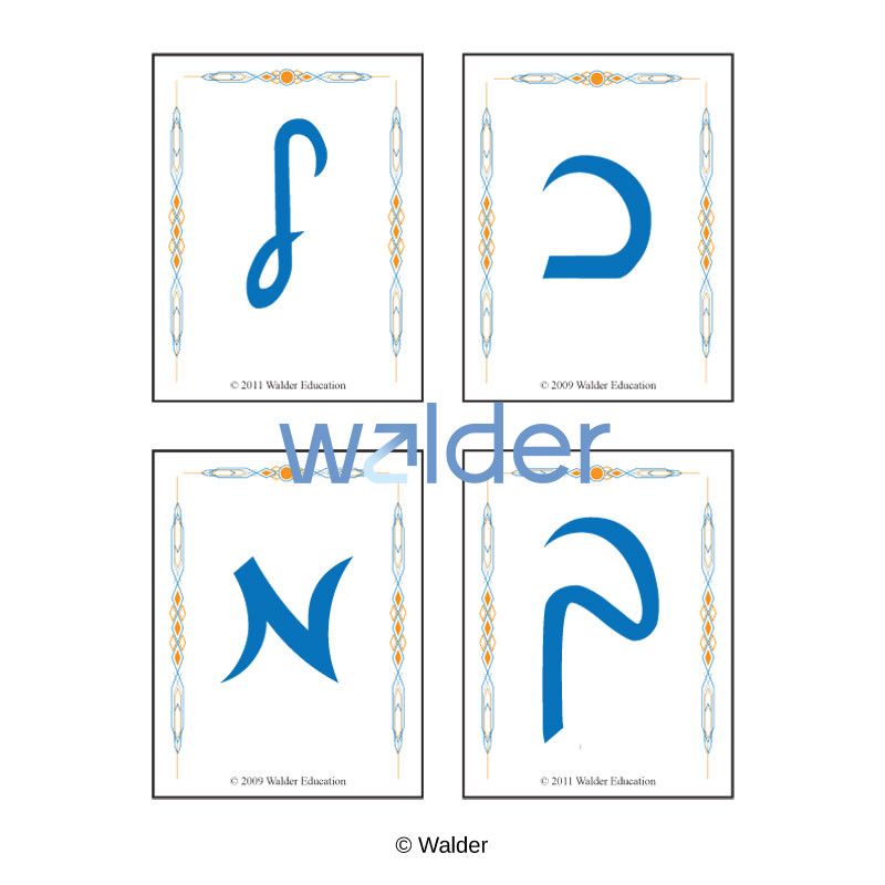 These clear and easy-to-read blue script alef beis letters on white background flashcards will make learning the script alef bais letters simple and enjoyable. They can also be used to play Memory, Go Fish or other card games that require children to identify the letters to play the game. Works great as a classroom activity or learning center.