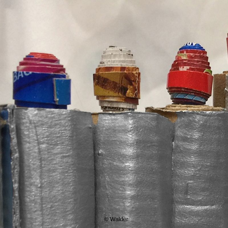 Students will enjoy using their imagination and creativity as they decide on what colors, shapes and styles to use to make this Menorah work of art made out of recycled materials. Using corrugated cardboard, cereal boxes, and beads, students will expand on their visual reasoning skills, and hone their patterning and measurement skills while singing Chanukah songs and eating Latkes as they review many of the Chanukah halachos.