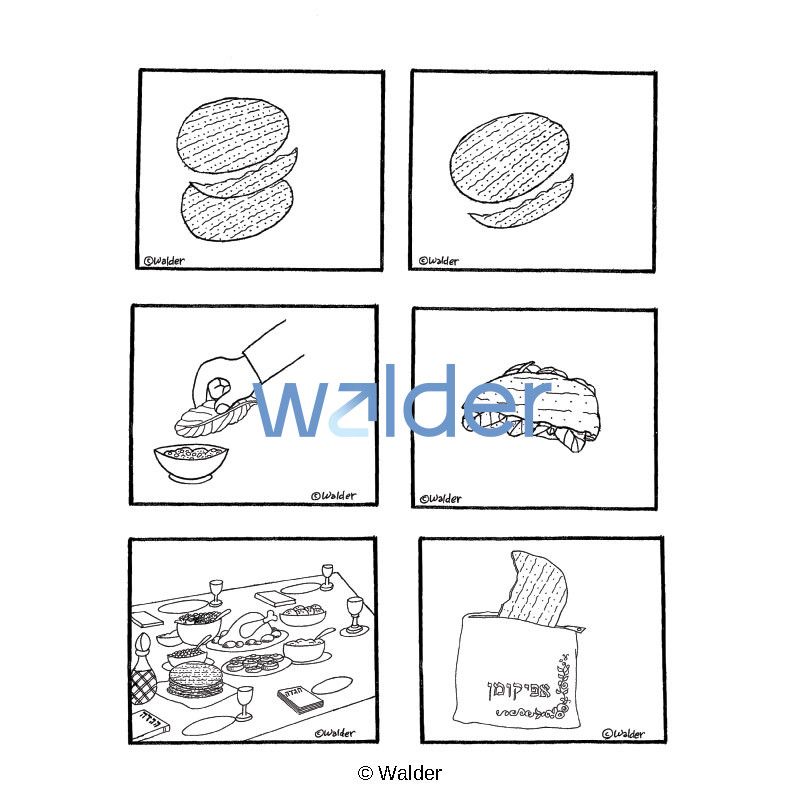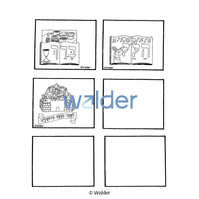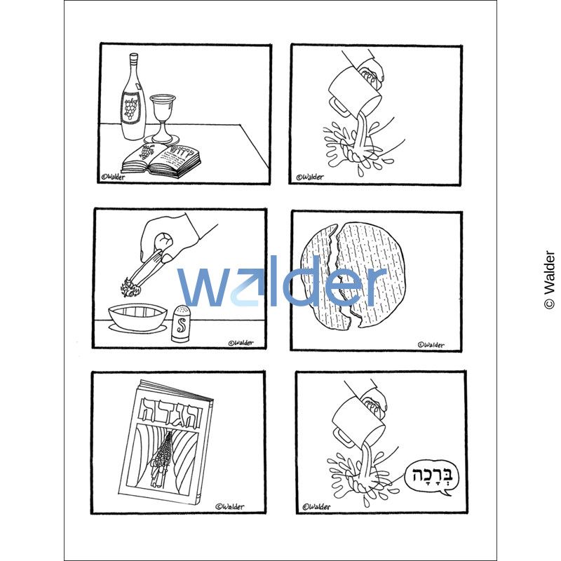 Small boxes depicting pictures of every step of the Seder. Possible Uses: 1) Use as coloring sheets to help reinforce lessons learned in class about the order of the Seder 2) Give each child 2 coloring sheets and have them cut out all pictures and use as a matching game. 3) Use as part of a worksheet. Cut each picture and have students glue in order and correctly label each picture. 4) Make it into a file folder game. Write out each part of the Seder in the correct order and in large font inside a file folder and laminate. Color, laminate, and cut out each picture. Affix one side of Velcro under every written word and on the back of each picture. Have students match the picture to the correct word.