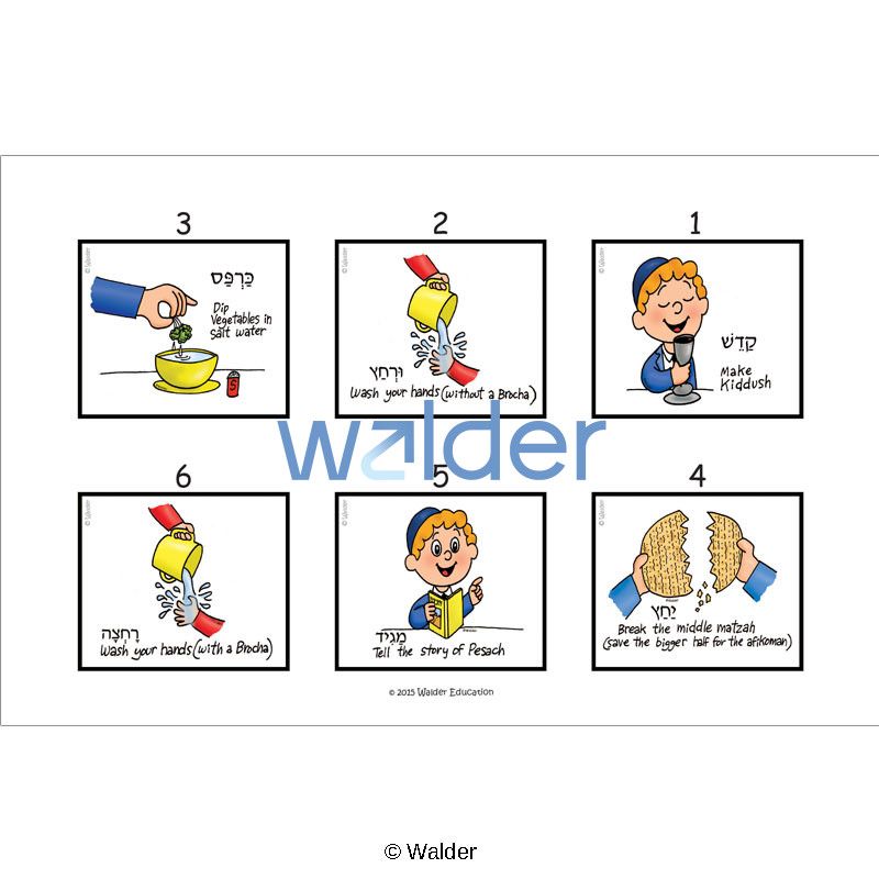 Put together this easy Pesach sequencing poster that will make learning about the Seder meaningful and fun. The poster incorporates understanding the order of the Seder. Cut out the included “Steps of the Seder” pictures and affix to the poster background with velcro for a great teaching tool!