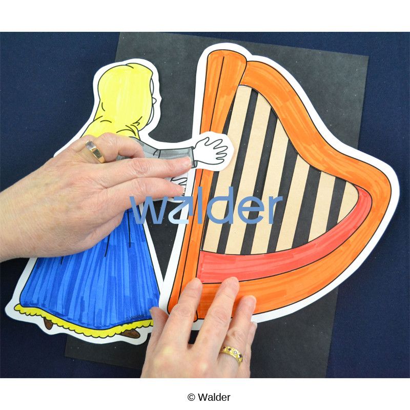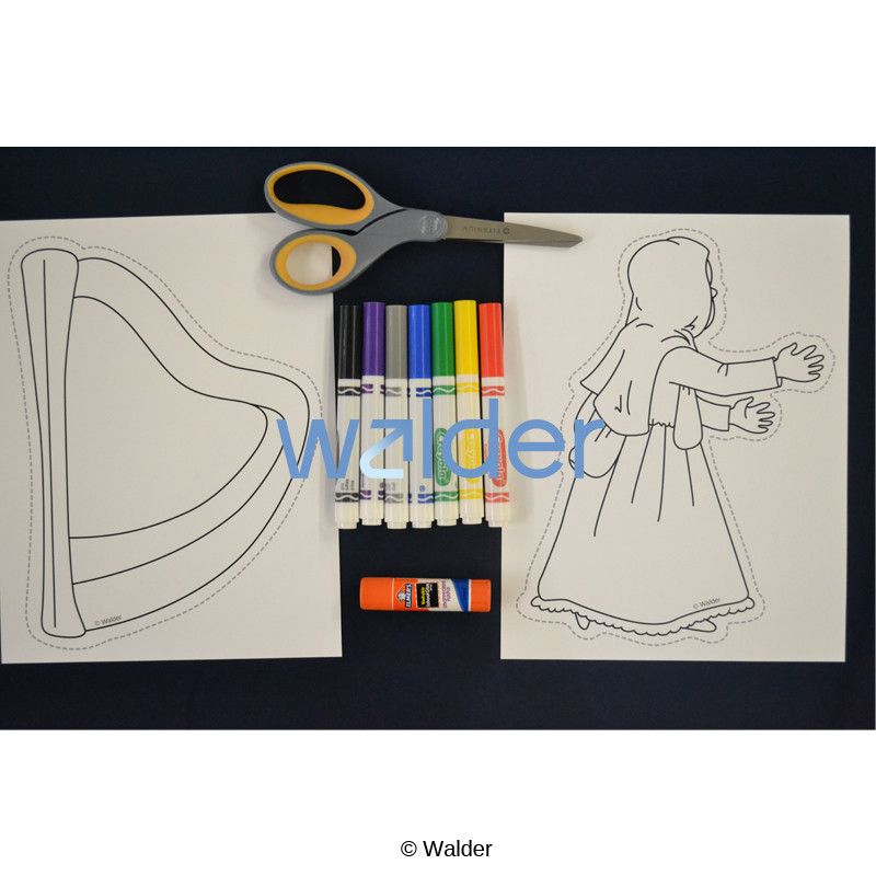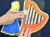 This educational aid demonstrates Serach bas Asher playing on a harp. She was asked by Yaakov’s sons to play on a harp to let Yaakov know that Yosef is alive. By gluing the strips of paper to the harp to mimic the harp strings, it will strengthen visual spatial and eye-hand coordination skills.