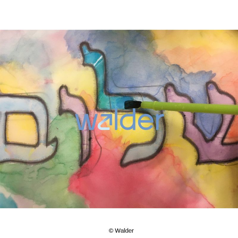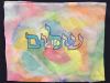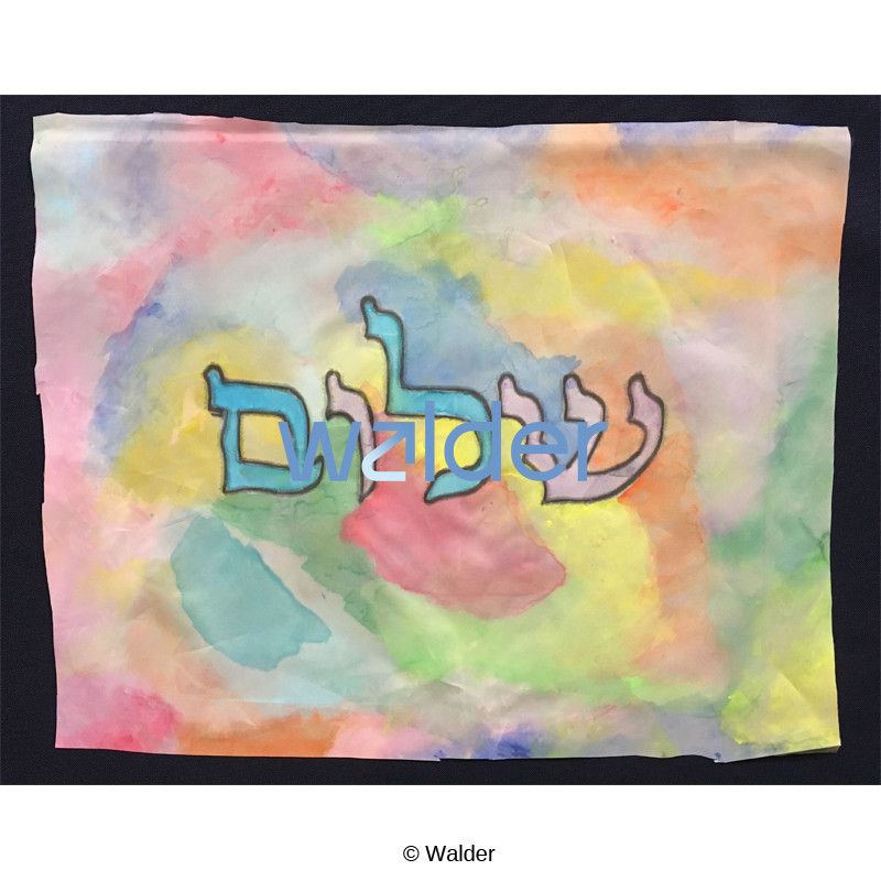 This colorful, eye-catching challah cover is decorated using a tie-dye technique. Students will experiment with the amount of water they add to the paint and how that affects the shade of the color. They will also learn the connection between the mann the Jewish people were blessed with in the desert, and the challos we have at our Shabbos table with a cover under and over it.