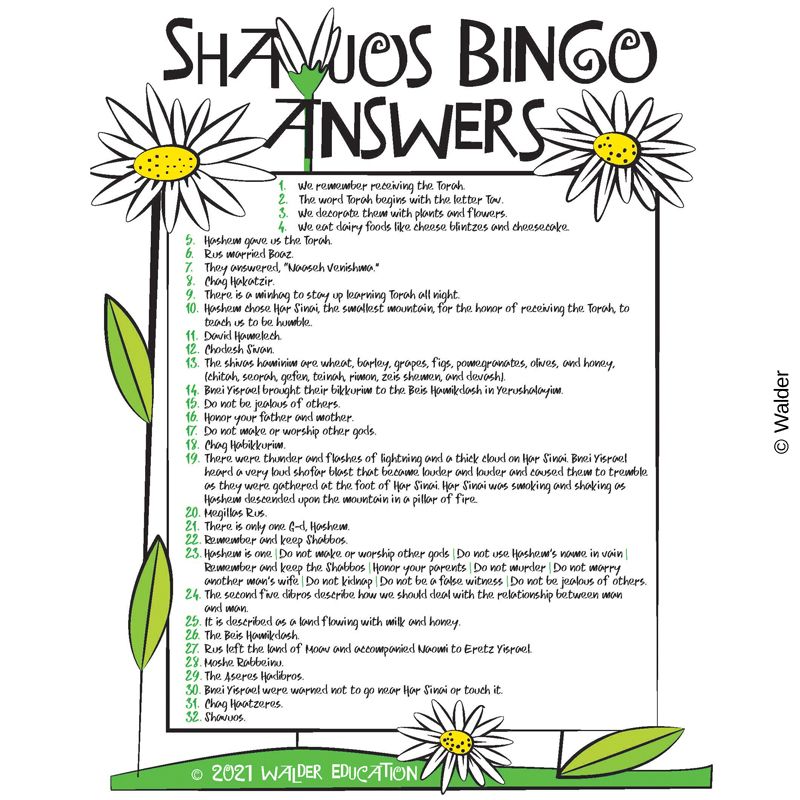 Reinforce Shavuos customs and concepts with this Bingo review game. The teacher reads out a question, and the students place a marker over the picture on their Bingo board that illustrates the answer. The question cards include the question and an associated picture. An answer key is provided. With 24 unique Bingo boards, everyone can play.