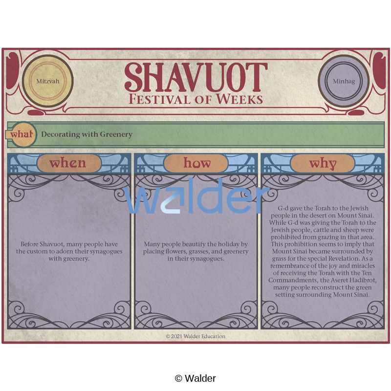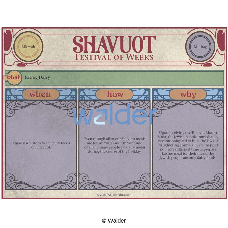 Perfect for Hebrew Schools, this holiday handout contains everything you need to know about Shavuot. Familiarize yourself, your students, and your guests with the significant aspects and practices of the holiday.