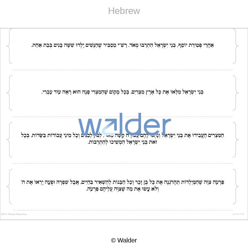 Our newly updated Illustrated Parsha Series 2.0 contains beautiful pictures depicting scenes from the weekly torah portion. These images include the main events/mitzvos in each week’s parsha and lend themselves to being used for a variety of activities and visual review. The series includes text-free drawings and separate caption documents with text that relates to the pictures in multiple languages and styles. Answer Keys are also included so teachers can easily reference the order and text associated with each picture.