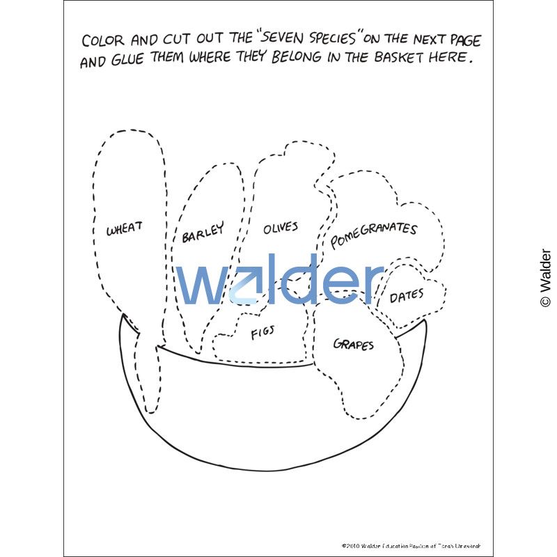 A Shivas Haminim Basket that students can create themselves. Possible Uses: Students will cut out the shapes of the fruit and glue them to the appropriate place in the basket similar to the way one would complete a puzzle. This is an excellent actvity to build visual motor skills. Have students color the pictures and basket.