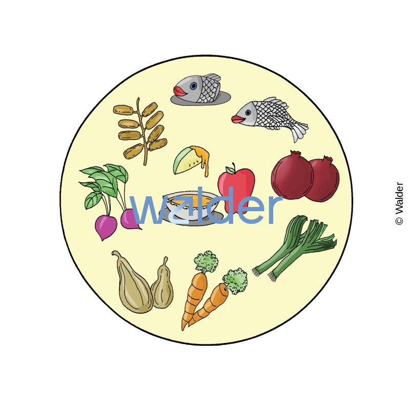 The Walder Education Pavilion brings Jewish education to life with these Yamim Noraim clipart illustrations and images. Dress up the classroom, decorate student pages, and create activities or gifts. These adorable and fun drawings capture the essence of the High Holidays. Pictured: Simanim