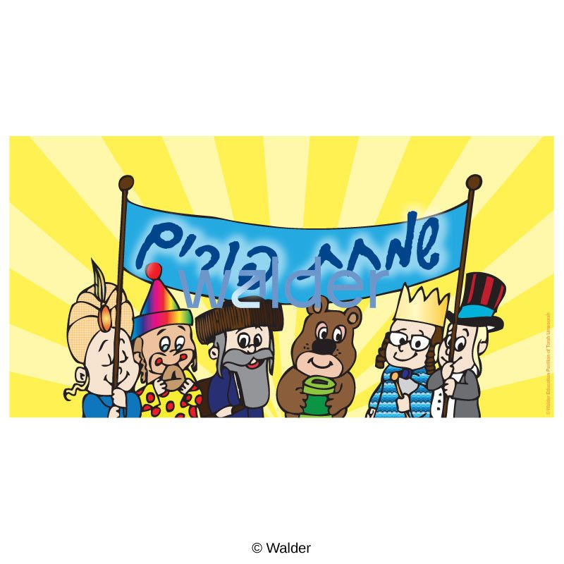 A colorful Purim banner which will help create a feeling of excitement about the upcoming holiday. This poster features happy children dressed up in their Purim costumes, and is titled in Hebrew ‘simchas Purim’.