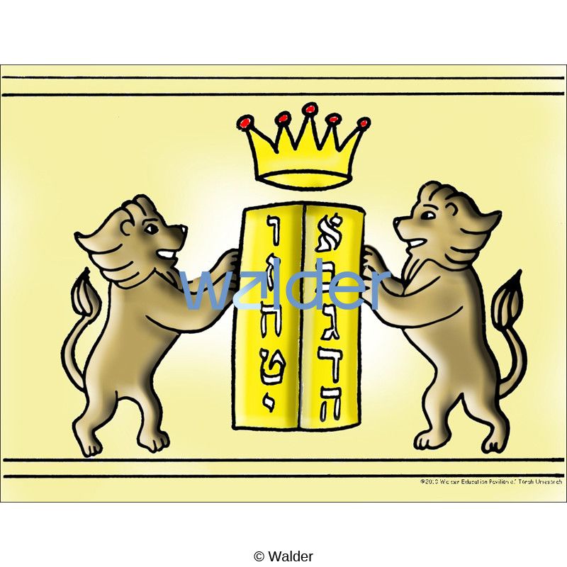 A Flag project to be made for Simchas Torah. Includes an illustration of two lions holding up the luchos. Possible uses: Have students color the paper and using masking tape attach it to a skewer or narrow stick. (caution: if using a skewer make sure the sharp side will not pose a danger to the children by covering it with a thick layer of tape.)