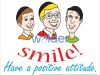 Poster featuring three smiling boys in different colored shirts over the words ‘Smile! Have a positive attitude.’ on a white background.