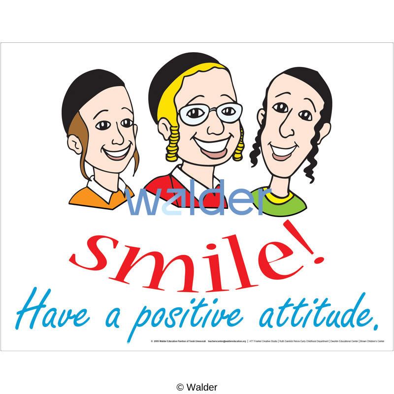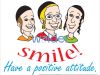 Poster featuring three smiling boys in different colored shirts over the words ‘Smile! Have a positive attitude.’ on a white background.