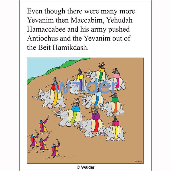 This history of Chanukah depicts all of the events that led to the creation of the holiday. From Antiochus’s evil decrees to the desecration of the Beis Hamikdash and the miracle of the menorah, children will get a glimpse of why Chanukah is celebrated. Difficult words are explained in the accompanying glossary.