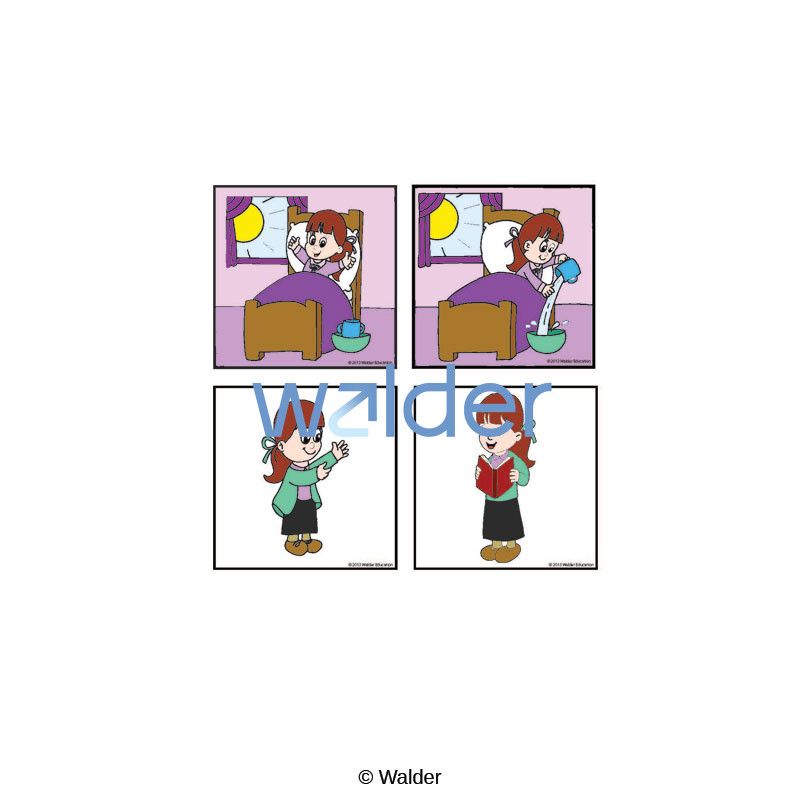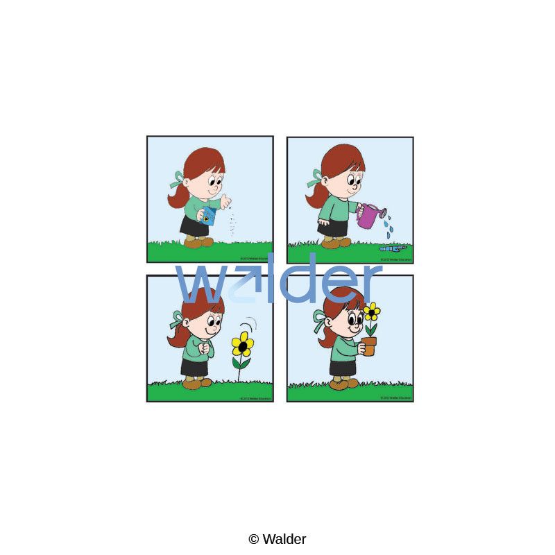 This early childhood learning center will strengthen sequencing and pictoral storytelling skills in young children when they are told to put the images in the correct order and describe what is happening in the scene depicted. The train will illustrate for students how the different steps follow one another to complete a process. They are self-checking when teachers number the pieces in the right order on the back of each piece.