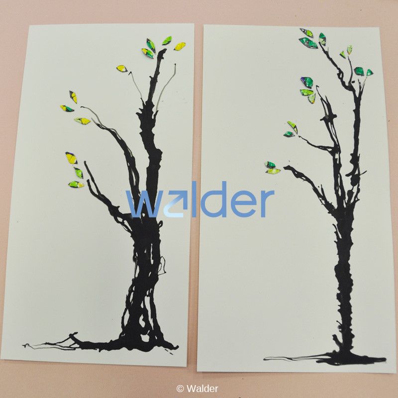 This very unique, Japanese-style, painted tree with eggshell mosaic leaves creates a special design for a Tu B’Shevat theme.