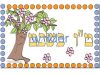 These beautiful placemats come in both Hebrew and English versions, and can be used when enjoying delicious fruits on Tu B’Shevat. This is a 1-2-3 project; 1. Print 2. Color (or use stickers) 3. Laminate. Of course, detailed instructions and a template are included. The coloring of the placemat with the dots can be used as a tool for building patterning and sequencing skills. (For guidance, see alternate uses).