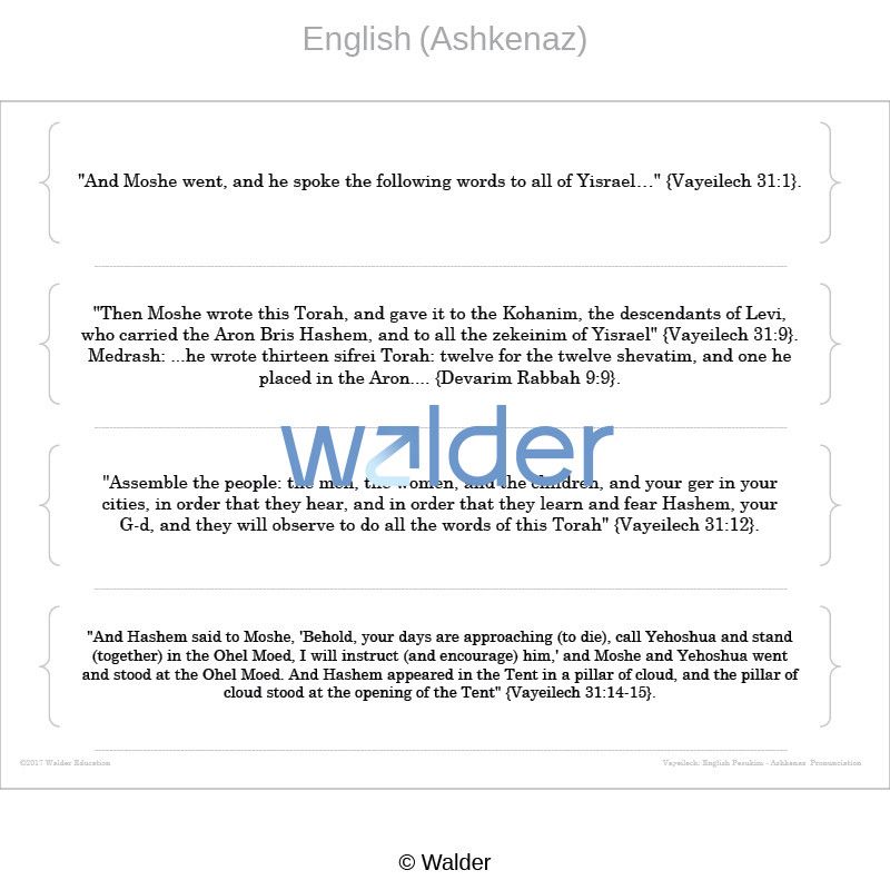 | Subject(s): | Tanach, Torah: Chumash and Parsha, Devarim, Vayeilech |