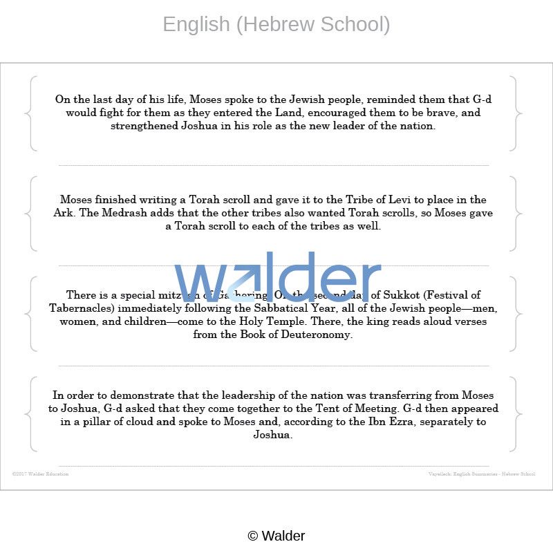 | Subject(s): | Tanach, Torah: Chumash and Parsha, Devarim, Vayeilech |