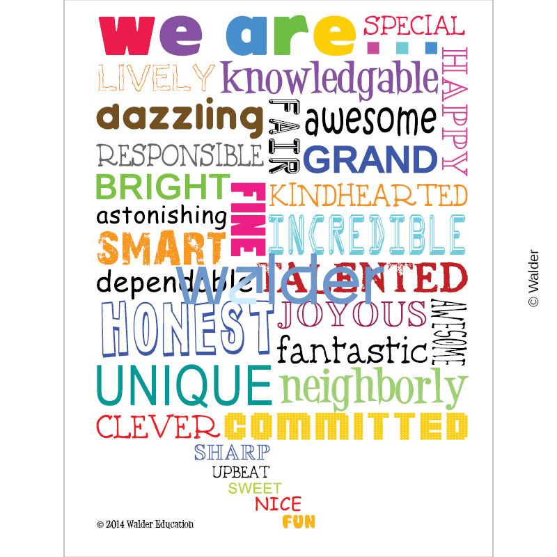 Create a culture of positivity and self-respect in the classroom with this poster that reminds students that they are special, happy, lively, knowledgeable, dazzling, fair, awesome, responsible, grand, bright, fine, kindhearted, incredible, smart, dependable, talented, honest, joyous, fantastic, unique, neighborly, clever, committed, sharp, upbeat, sweet, nice and fun. By creating an expectation of compliments within the classroom, students will begin to speak positively about themselves and others around them.