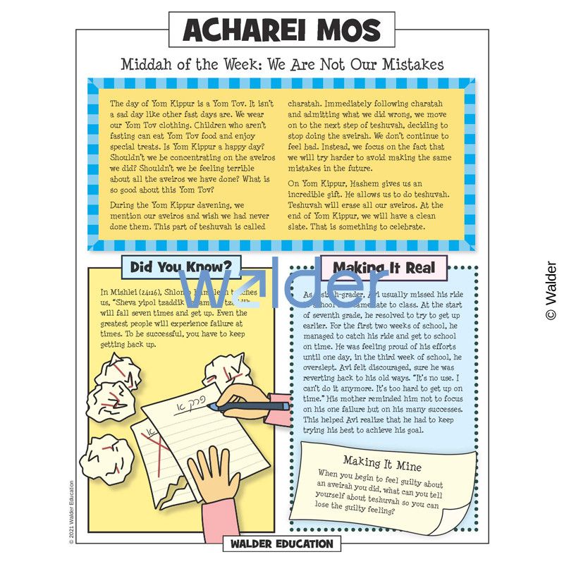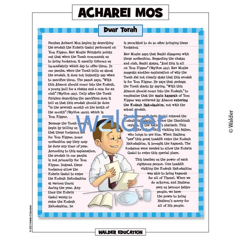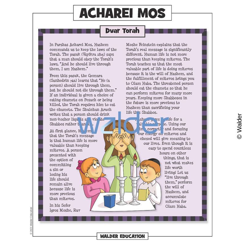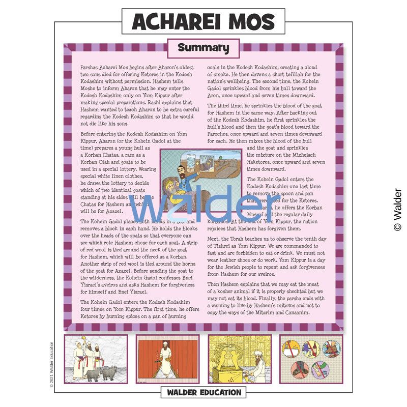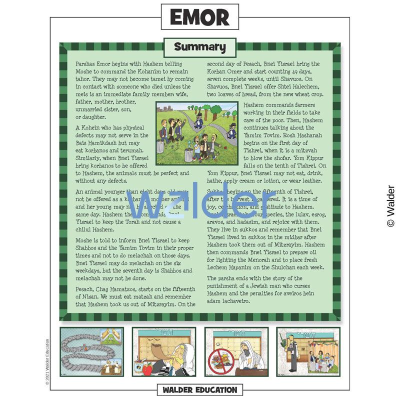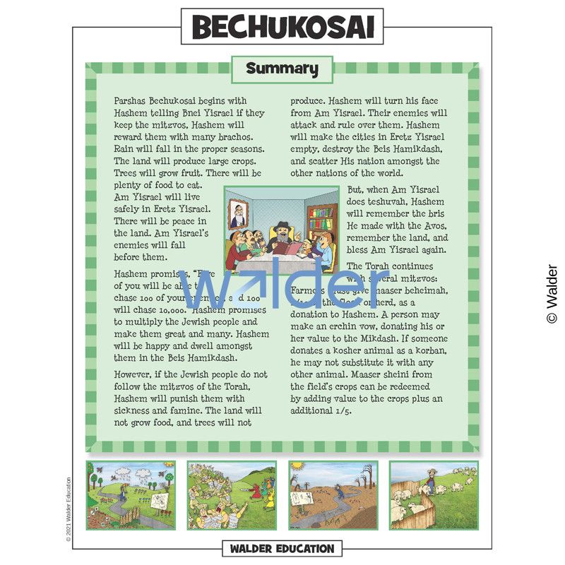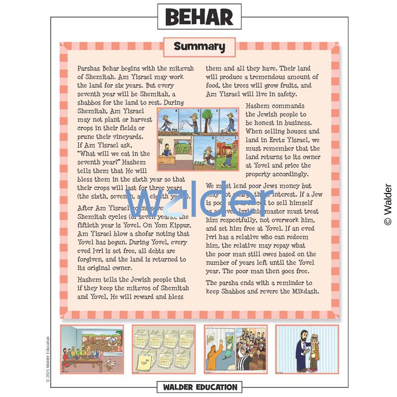 This handout is filled with everything needed to review the weekly parsha at the Shabbos table. It contains a summary of the weekly Torah portion, a middah of the week, and divrei Torah that are sure to engage children of all ages.