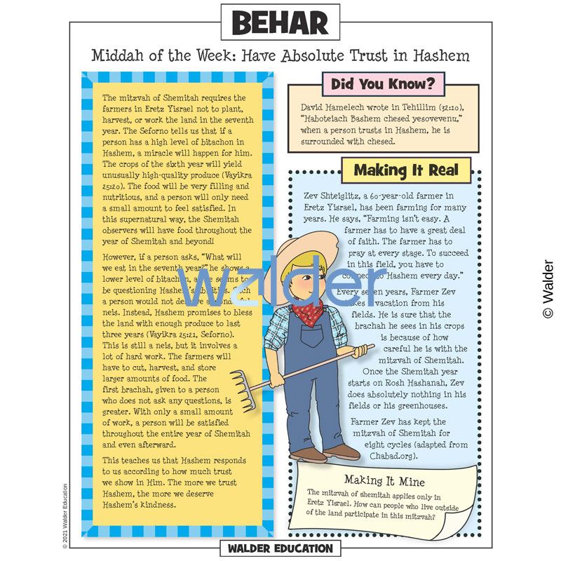 This handout is filled with everything needed to review the weekly parsha at the Shabbos table. It contains a summary of the weekly Torah portion, a middah of the week, and divrei Torah that are sure to engage children of all ages.
