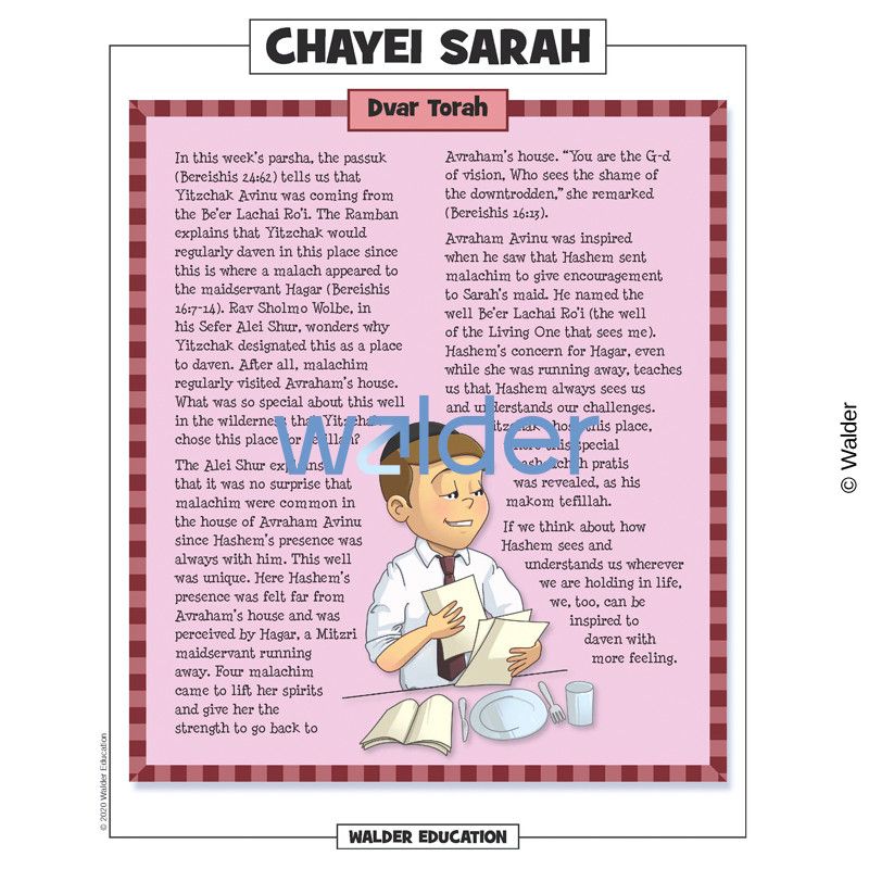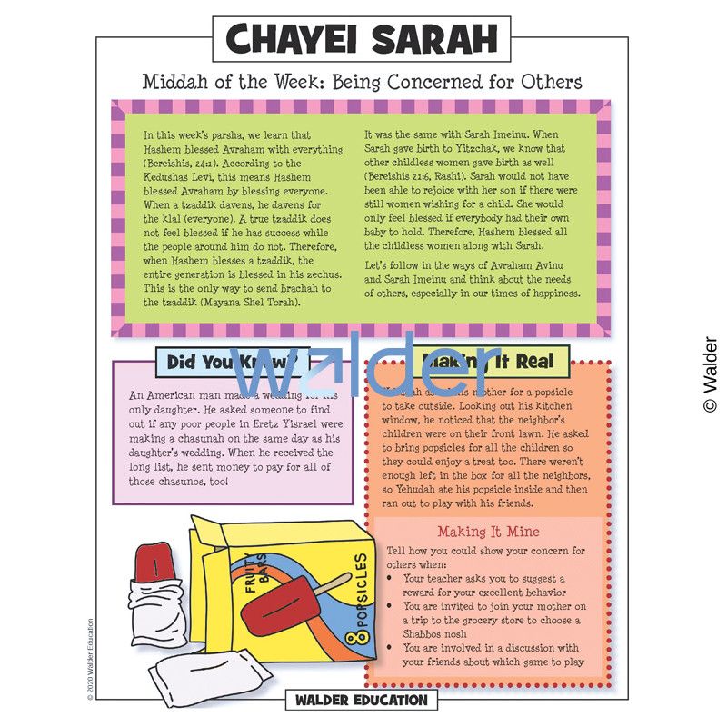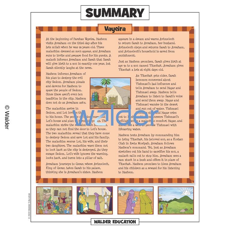 This handout is filled with everything the Shabbos table needs to review the weekly parshah. It contains a summary of the weekly portion, a middah of the week and divrei torah that are sure to engage children of all levels.