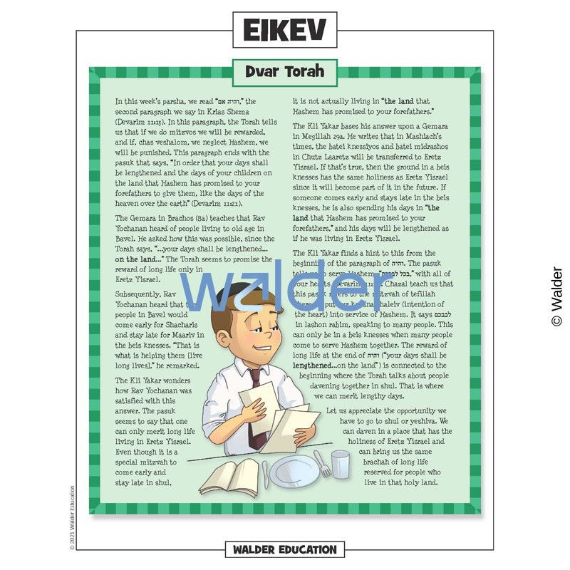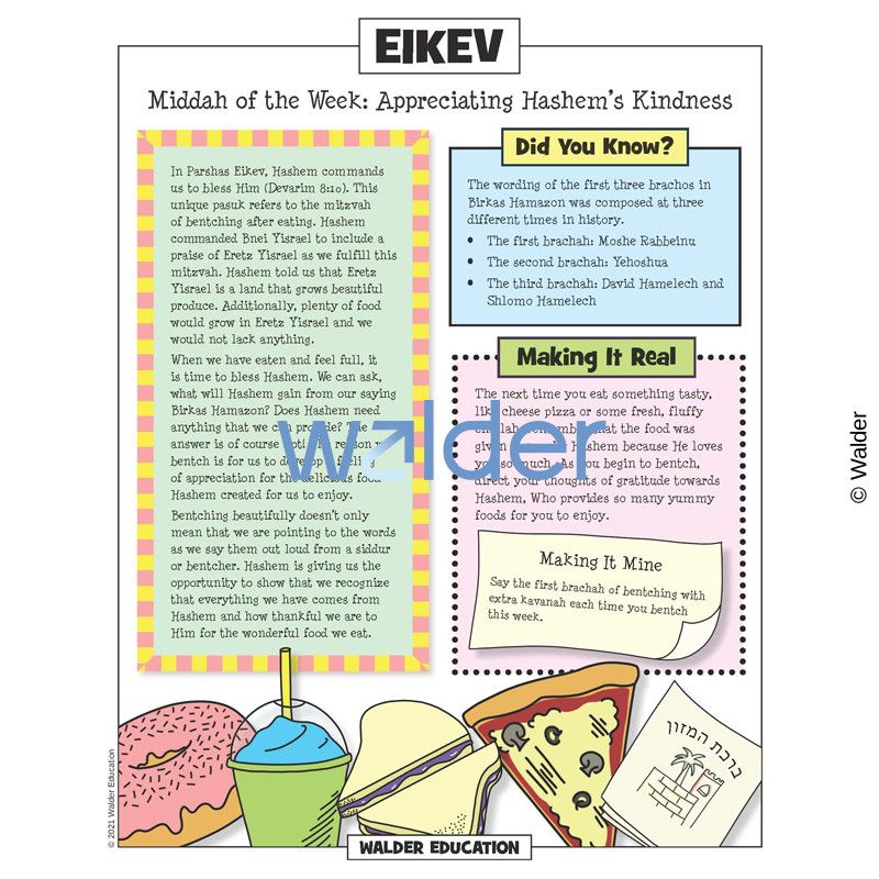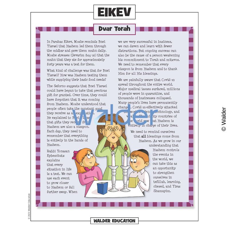 This handout is filled with everything needed to review the weekly parsha at the Shabbos table. It contains a summary of the weekly Torah portion, a middah of the week, and divrei Torah that are sure to engage children of all ages.