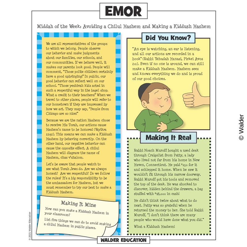 This handout is filled with everything needed to review the weekly parsha at the Shabbos table. It contains a summary of the weekly Torah portion, a middah of the week, and divrei Torah that are sure to engage children of all ages.