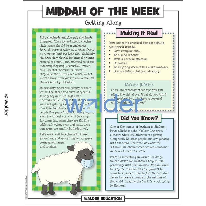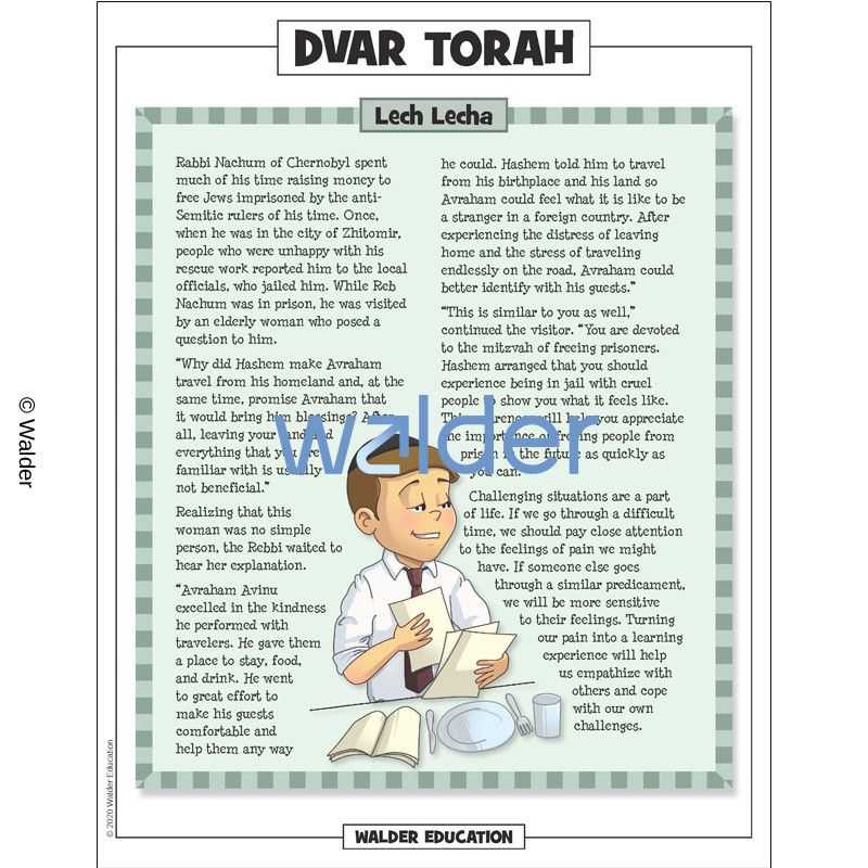 This handout is filled with everything the Shabbos table needs to review the weekly parshah. It contains a summary of the weekly portion, a middah of the week and divrei torah that are sure to engage children of all levels.