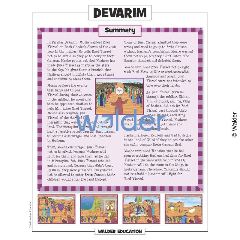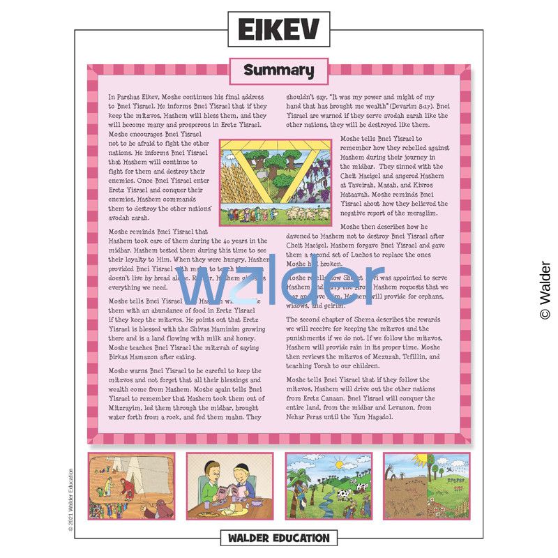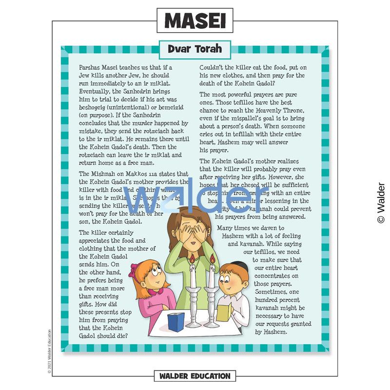 This handout is filled with everything needed to review the weekly parsha at the Shabbos table. It contains a summary of the weekly Torah portion, a middah of the week, and divrei Torah that are sure to engage children of all ages.
