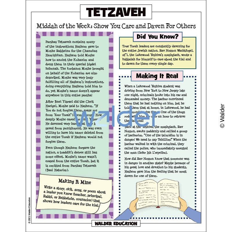 This handout is filled with everything needed to review the weekly parsha at the Shabbos table. It contains a summary of the weekly Torah portion, a middah of the week, and divrei Torah that are sure to engage children of all ages.