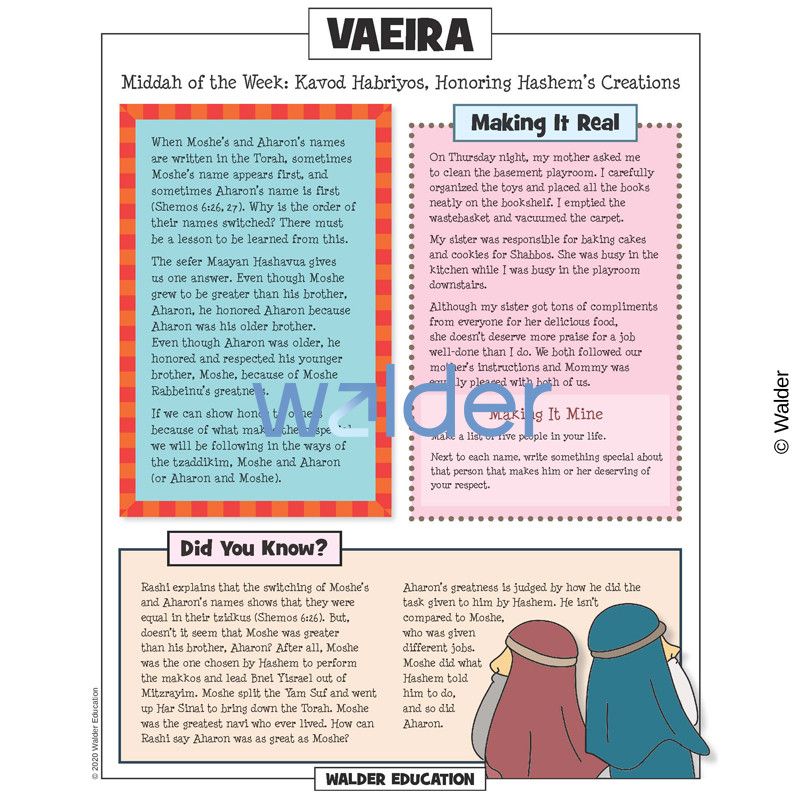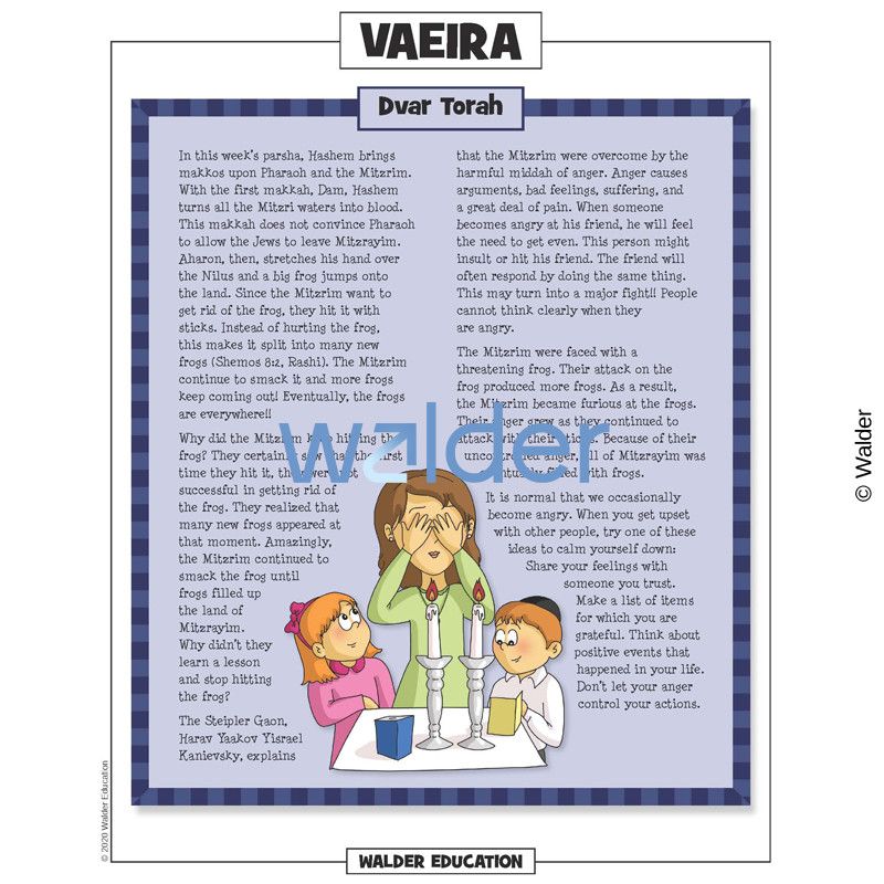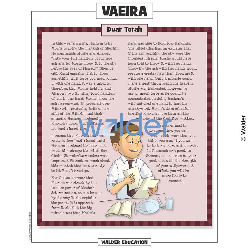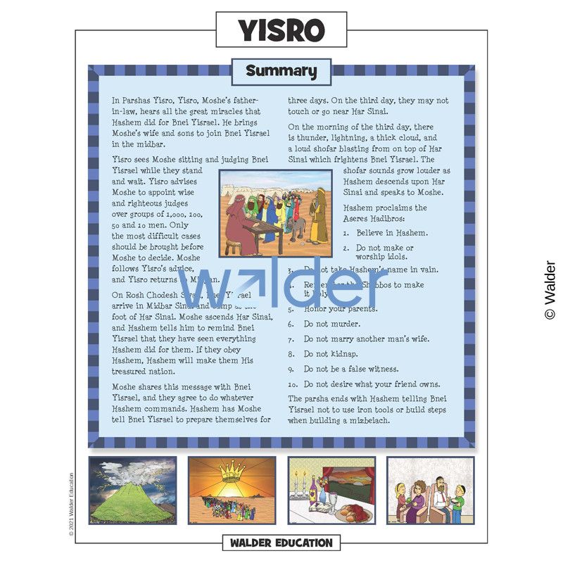 This handout is filled with everything needed to review the weekly parsha at the Shabbos table. It contains a summary of the weekly Torah portion, a middah of the week, and divrei Torah that are sure to engage children of all ages.